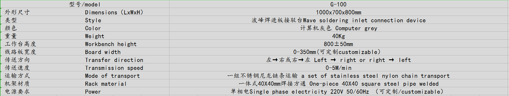 ● 高度和傾斜度可根據波峰焊調節,保證產品安全送入波峰焊
