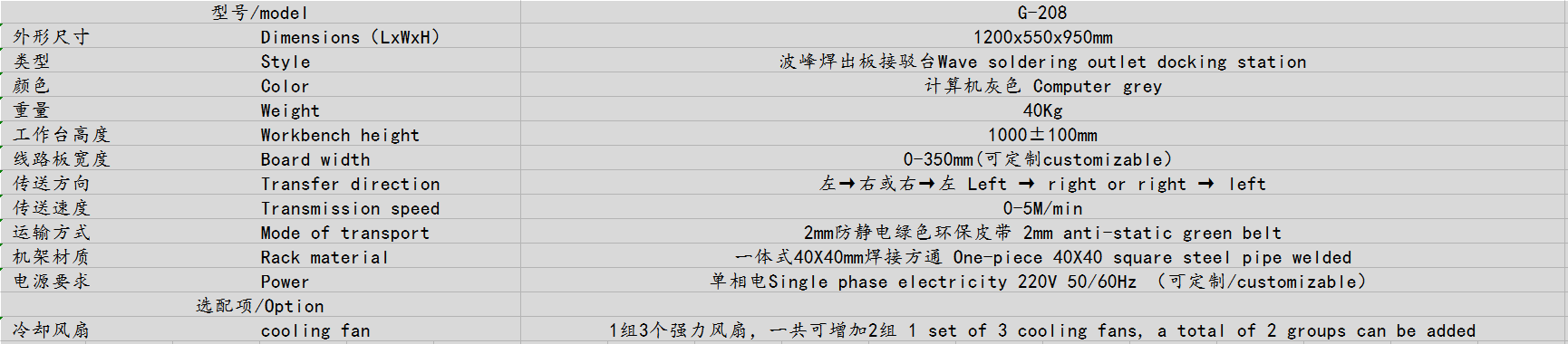● 適合用于波峰焊錫機(jī)后端輸送接駁臺,滿足車間自動化要求