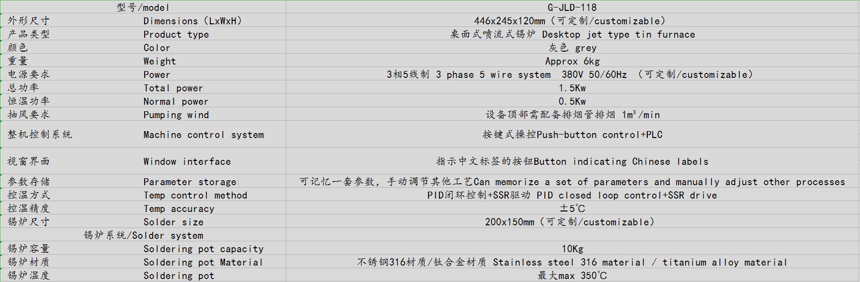 3、本熔錫爐的溫度范圍:0—400℃。