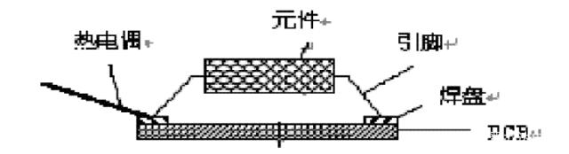 2 、熱電偶的位置與固定熱電偶的焊接位置也是一個(gè)應(yīng)認(rèn)真考慮的問(wèn)題,其原則是對(duì)熱容量大的組件焊盤(pán)處別忘了放置熱電偶,見(jiàn)圖 2 ,此外對(duì)熱敏感組件的外殼, PCB 上空檔處也應(yīng)放置熱電偶,以觀察板面溫度分布狀況。