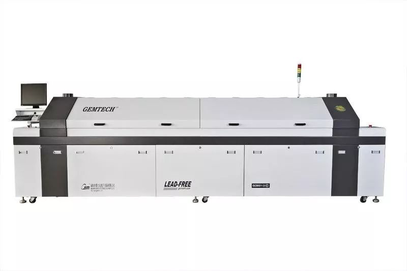 最后,將溫度冷卻到焊膏的凝固點溫度以下,使焊點固化。冷卻速度越快,焊接效果越好。如果冷卻速度過慢,會產生過量的共晶金屬化合物,焊點處容易出現大晶粒組織,降低焊點的強度。一般冷卻區的冷卻速度在4℃/S左右,會冷卻到75℃。
