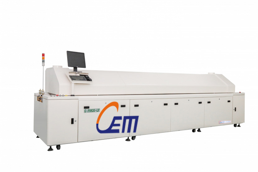 從貯熱板通孔中吹出的高溫熱空氣通過變流速層流性變速后到達PCB表面及各種元器件、錫漿(貼片膠),通過熱傳遞將高溫氣體中熱量交換至PCB焊料上,保證機器內的溫度分布和不同加熱工件溫度的均一性。